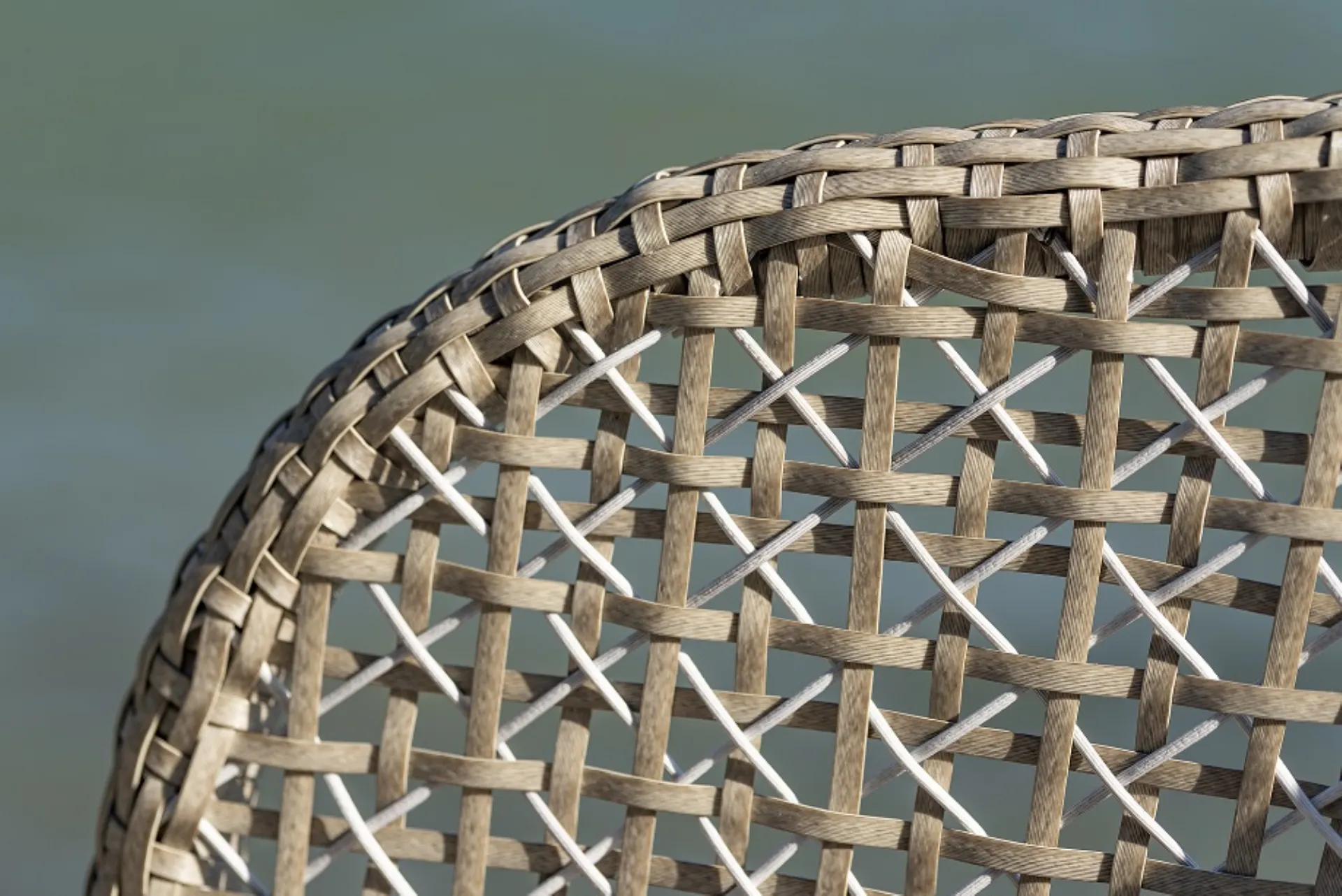 Sgabello con telaio in alluminio verniciato a polveri di poliestere, schienale rivestito da un intreccio in PVC a due colori. Il cuscino è in tessuto PVC, con imbottitura drenante e sfoderabile. Il poggiapiedi è rivestito in alluminio anodizzato.