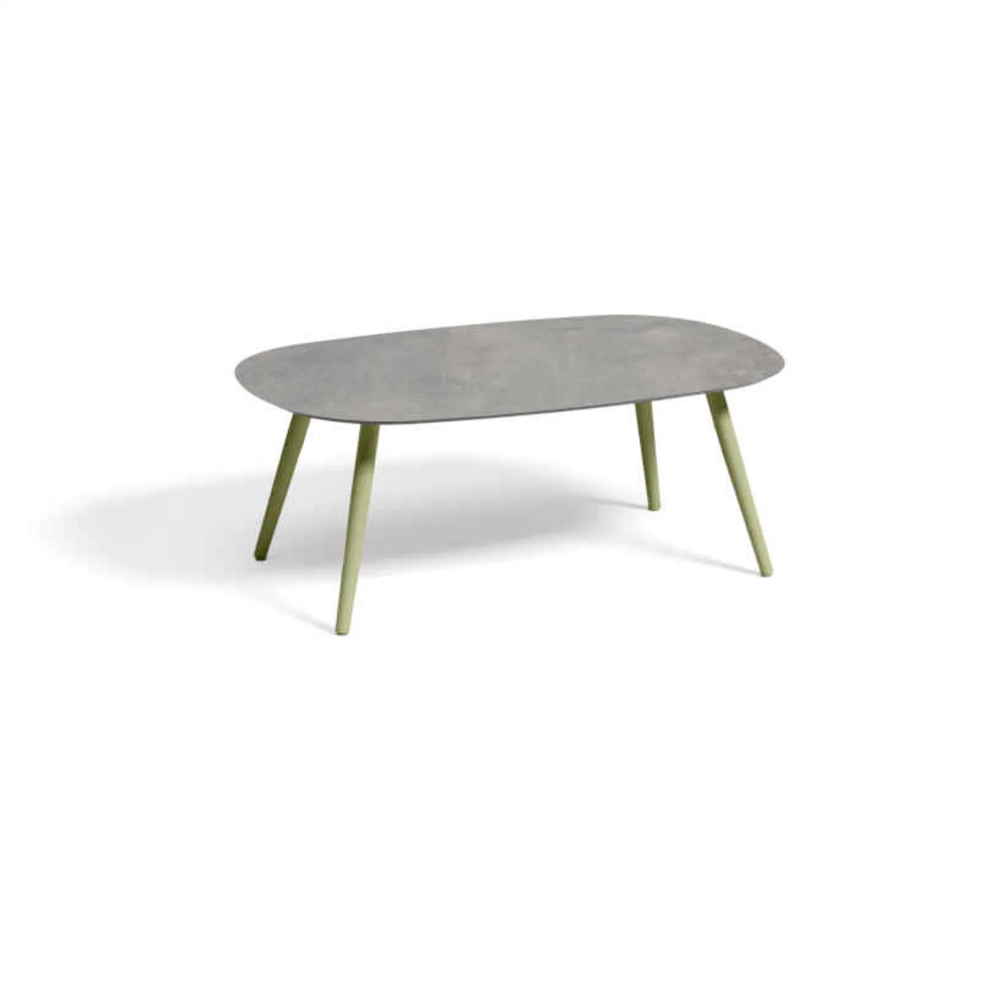 Tavolino con gambe in alluminio verniciate a polveri di poliestere e top in HPL-Compact da 12mm.