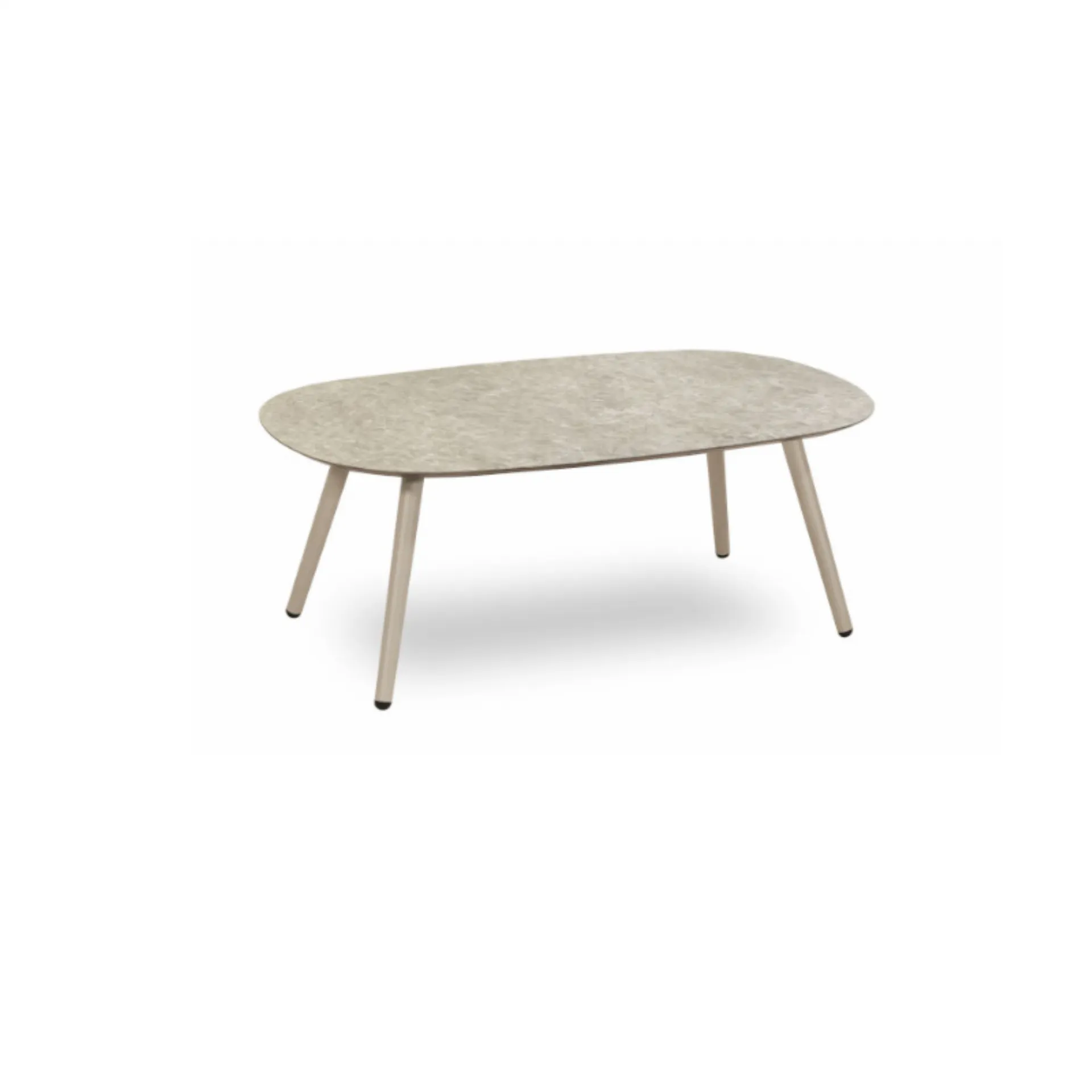 Tavolino con gambe in alluminio verniciate a polveri di poliestere e top in HPL-Compact da 12mm.