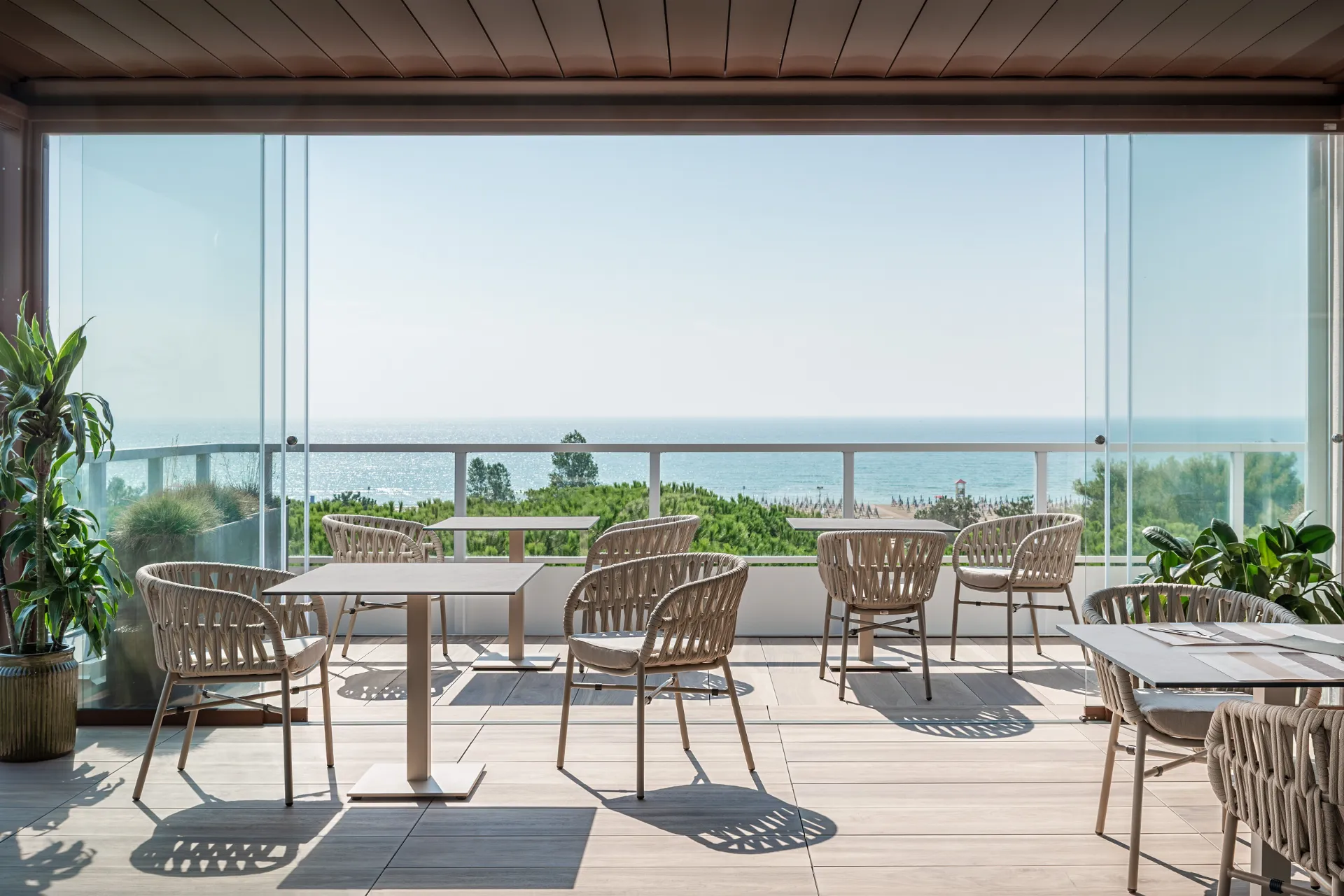 Armchair with polyester powder-coated aluminum frame, back is covered with hand-woven synthetic rope. The cushion has a removable PVC fabric cover and quick dry padding.